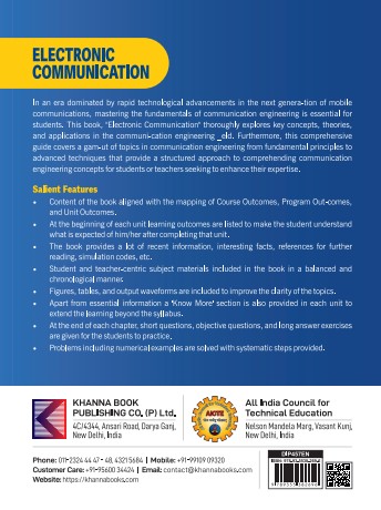 In an era dominated by rapid technological advancements in the next generation of mobile communications, mastering the fundamentals of communication engineering is essential for students. This book, `Electronic communication’ thoroughly explores key concepts, theories, and applications in the communication engineering _eld. Furthermore, this comprehensive guide covers a gam- out of topics in communication engineering from fundamental principles to advanced techniques that provide a structured approach to comprehending communication engineering concepts for students or teachers seeking to enhance their expertise.