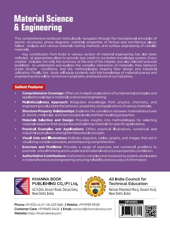 Key contribution from India in various section of material engineering has also been included at appropriate place to provide due credit to our Indian knowledge system. Every chapter includes not only the summary at the end of the chapter, but also relevant exercise problems to understand and explore the complex integration of materials, their behavior under diverse conditions, and the methodologies shaping their design and industrial utilization. Finally, this book will equip students with the knowledg4e of material science and engineering who will be tomorrow’s engineers, and backbone of our industries.