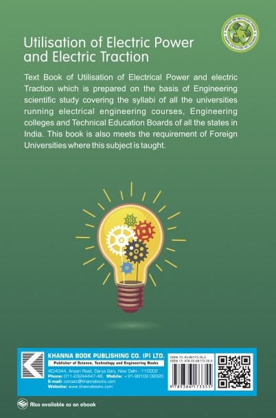 A Text Book of Utilization of Electric Power and Electric Traction which is prepared on the basis of Engineering scientific study covering the syllabi of all the universities running electrical engineering courses, Engineering colleges and Technical Education Boards of all the states in India. This book is also meets the requirement of Foreign Universities where this subject is taught.